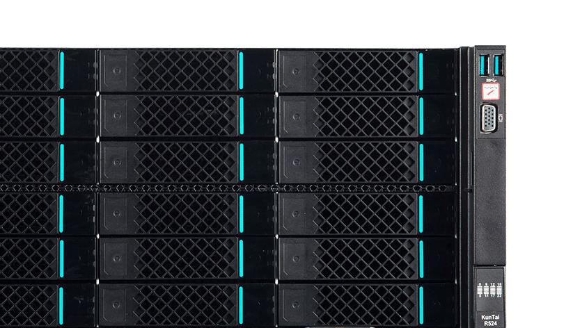 KunTai R524 存储型服务器是AG贵宾厅数码基于鲲鹏处理器推出的新一代 ARM数据中心服务器。。。。主要面向存储业务,,,具有海量存储、、、、高性能、、、、低功耗以及易扩展的特点,,,适合为大数据分析、、软件定义存 储等应用场景的工作负载进行髙效加速。。